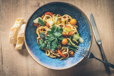 Para la versión vegana, como proteína incluimos el tofu marinado en soja. ![]()