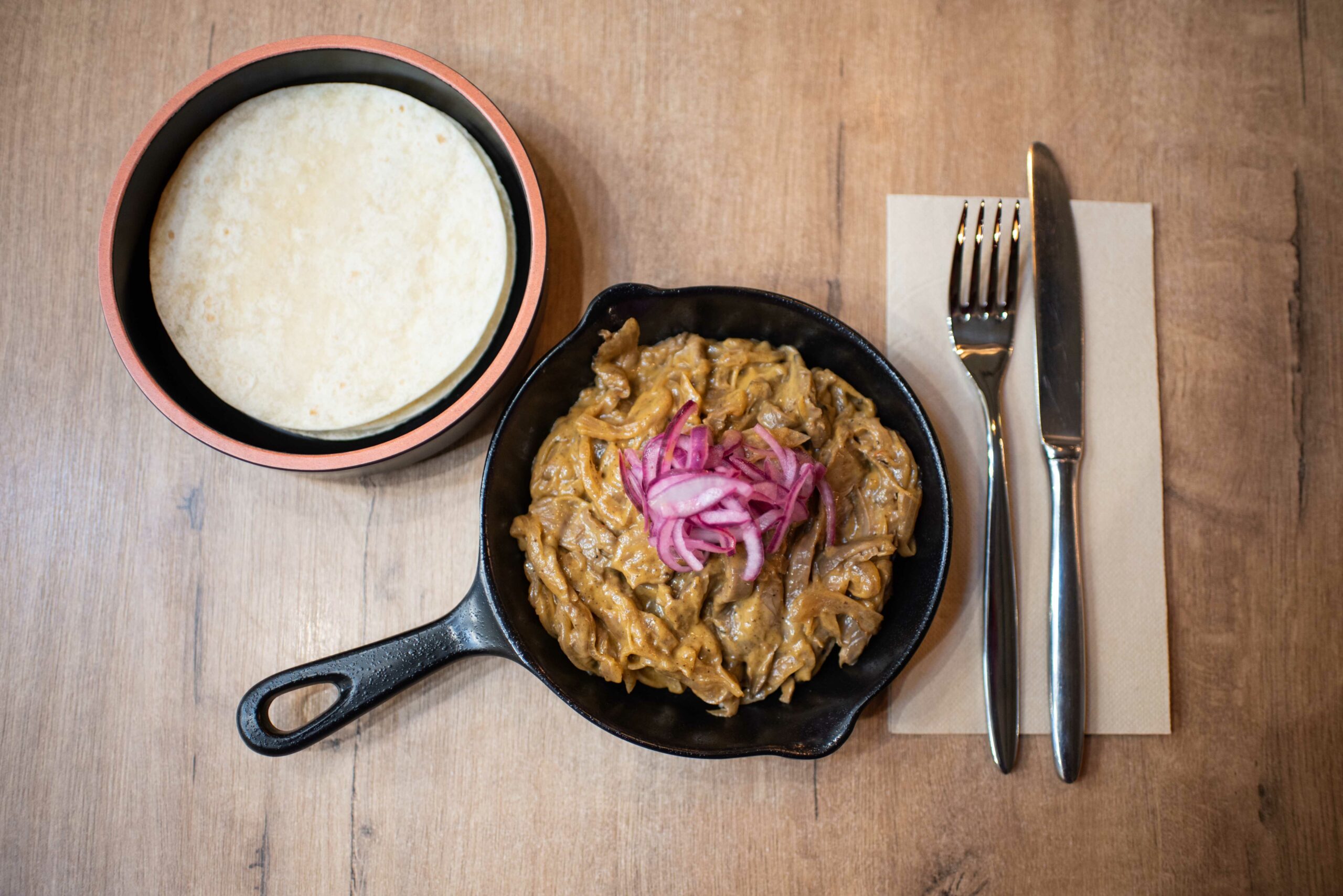 Tortillas de trigo para rellenar con un guiso de setas especiado con un toque de chipotle con cebolla morada marinada en lima y sal. Unos tacos al pastor pero vegetas. ![]()