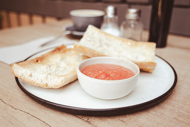 Otro clásico. Con bonito en lascas, piparras y finísimas láminas de pan crujiente.