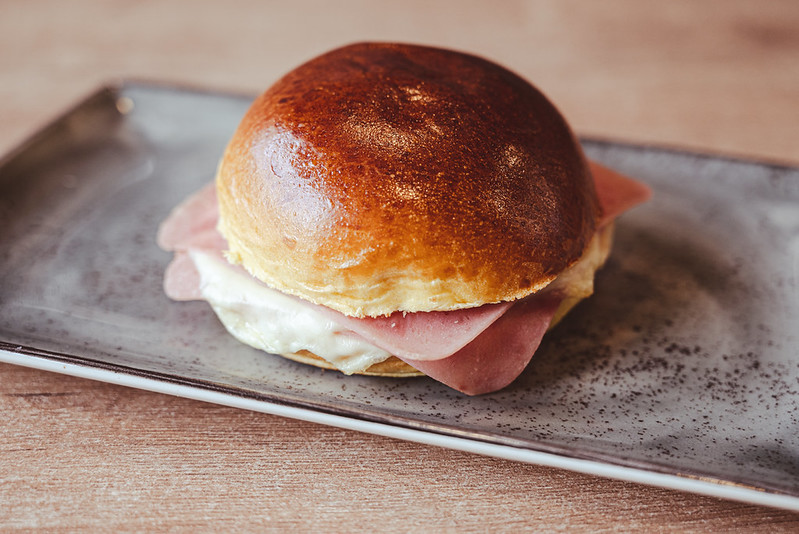 Algunos dirán que es su favorito para llevarse a pie de vía. Presa ibérica bien jugosa, cebolla confitada, rúcula y un toque de salsa chimichurri juguetona en pan de cristal. ![]()