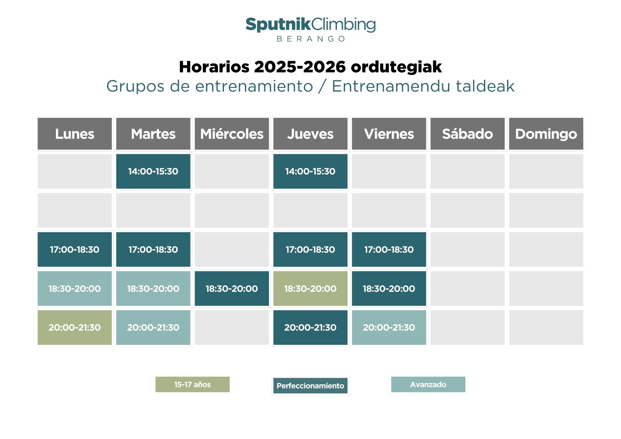 • ¿Quieres reservar tu plaza para el curso 2024-25? Pásate por nuestra recepción y te informamos de todo o consulta disponibilidad en berango@sputnikclimbing.com