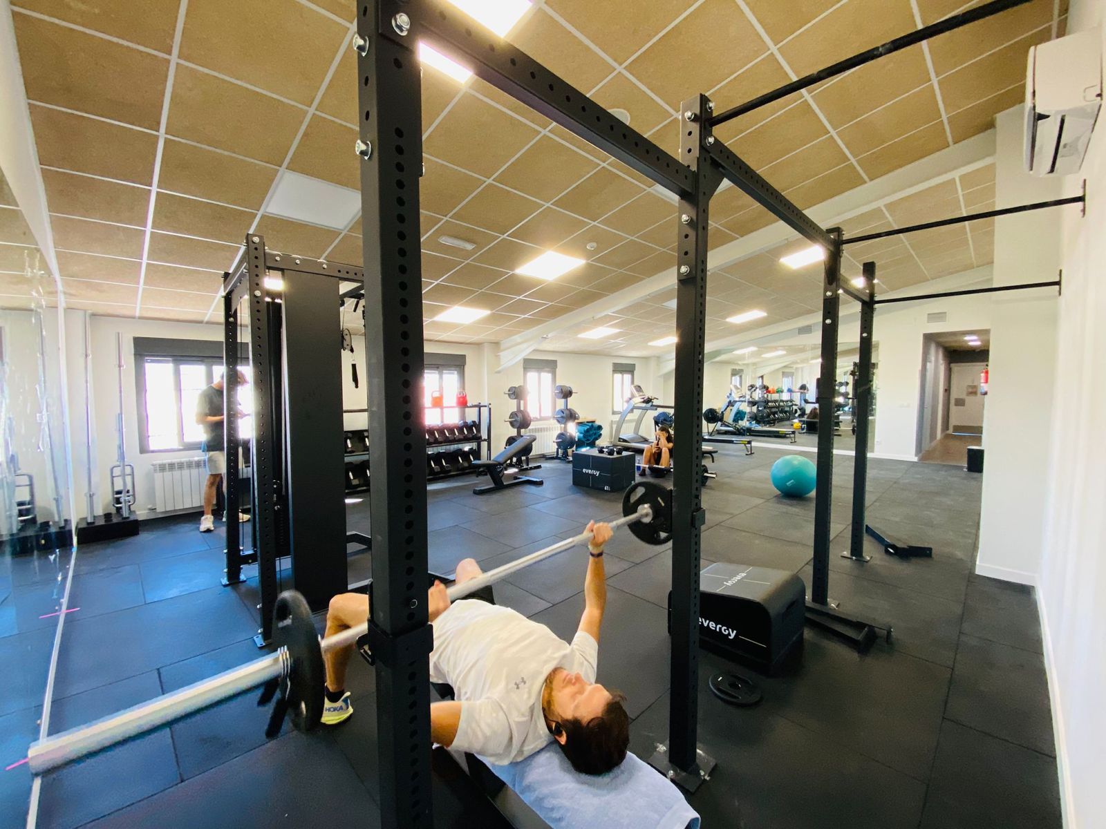 Un espacio diáfano de unos 72m2 con suelo técnico en toda la superficie. Cuenta con dos zonas diferenciadas de cardio (cinta de correr, remo y elíptica) y fuerza, (mancuernas, barras..) y otra zona de trabajo libre en el suelo.